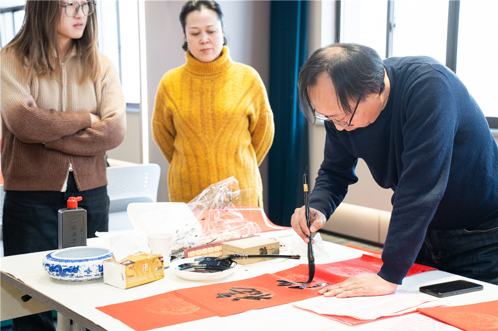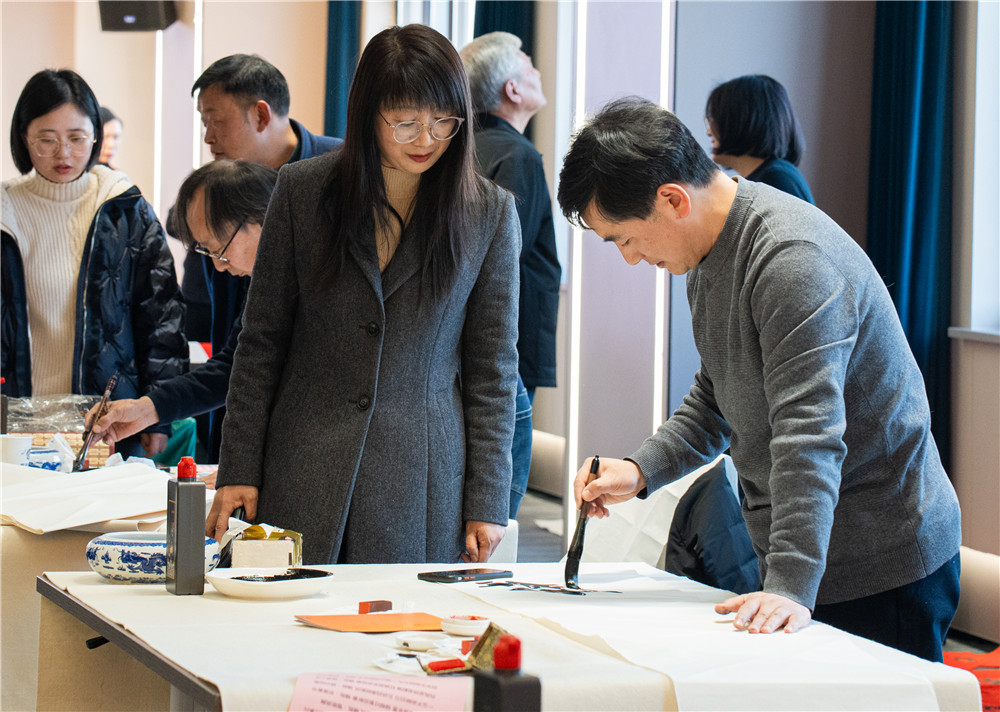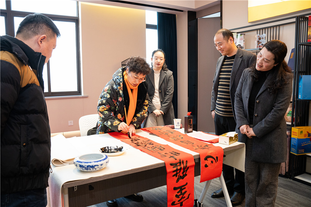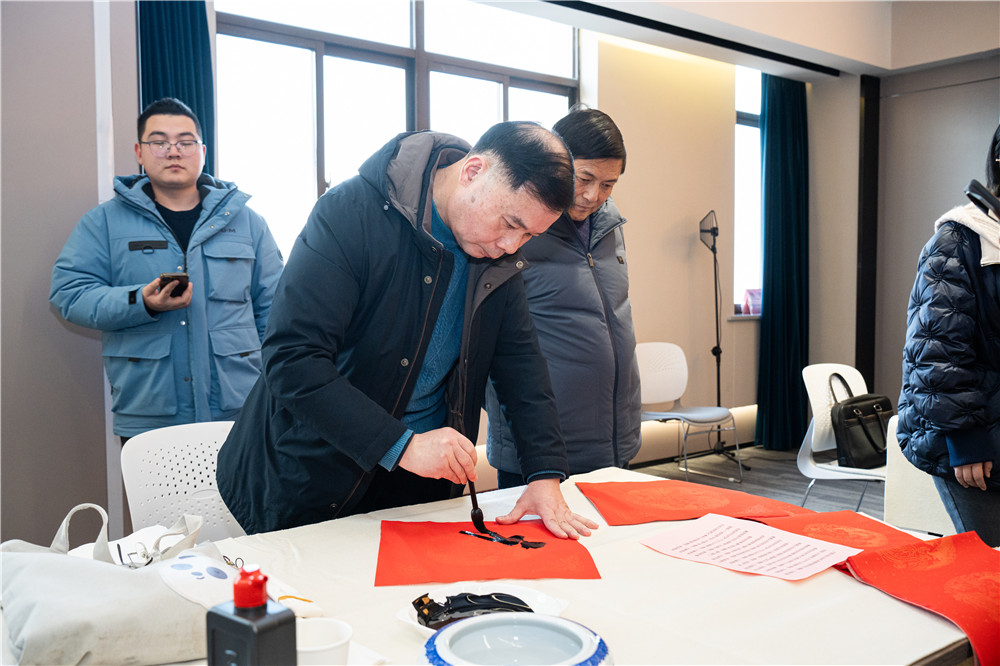 活动现场,充满新春气息的红纸铺满桌面,书法家和画家们挥毫泼墨,将浓浓的情意和深深的祝福融入字里行间,为企业家们送上“专属定制”的“文化年货”。